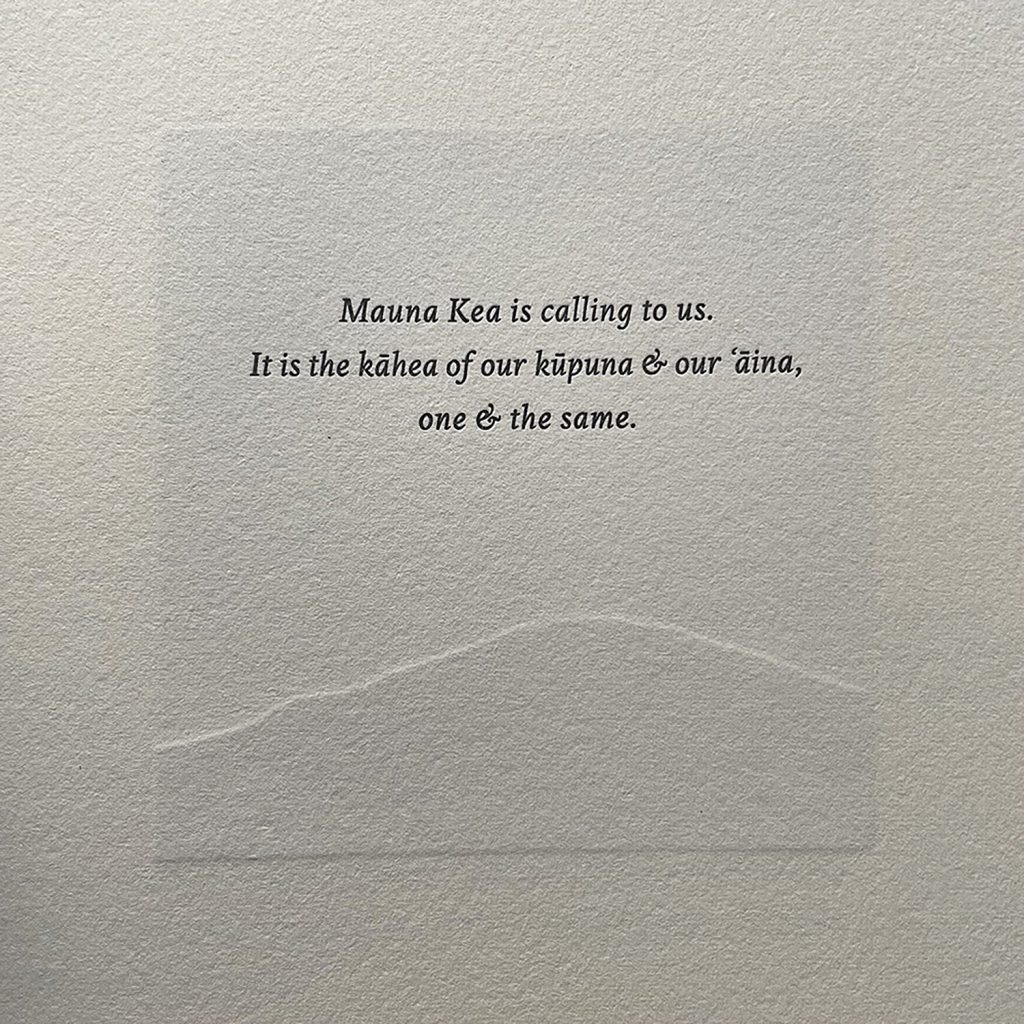 As part of this project, I’ve included a short pamphlet featuring an essay by mom. She wrote Mauna Kea Calling shortly after her move home to Hawai‘i in 2015 when she became involved in the struggle to protect Mauna Kea.In this short piece, she speaks to several issues affecting Native Hawaiians as the result of ongoing US occupation and militarism in our islands. I dedicate this project to her, in honor of our eternal bond and our shared commitment to protecting the rights of Indigenous peoples and sacred relationships with ‘āina.
