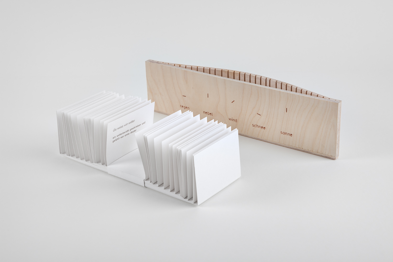 Meine Wetterbücher umfassen eine serielle und rituelle Arbeit. Seit 2014 übersetze ich jedes Jahr im gleichen Zeitraum von einem Monat Beobachtungen und Gedanken zum täglichen Wetter in einen anderen Buchraum. Die künsterlische Aus-einandersetzung ist mit persönlichen Empfindungen angereichert, die sich in Worten verdichten.