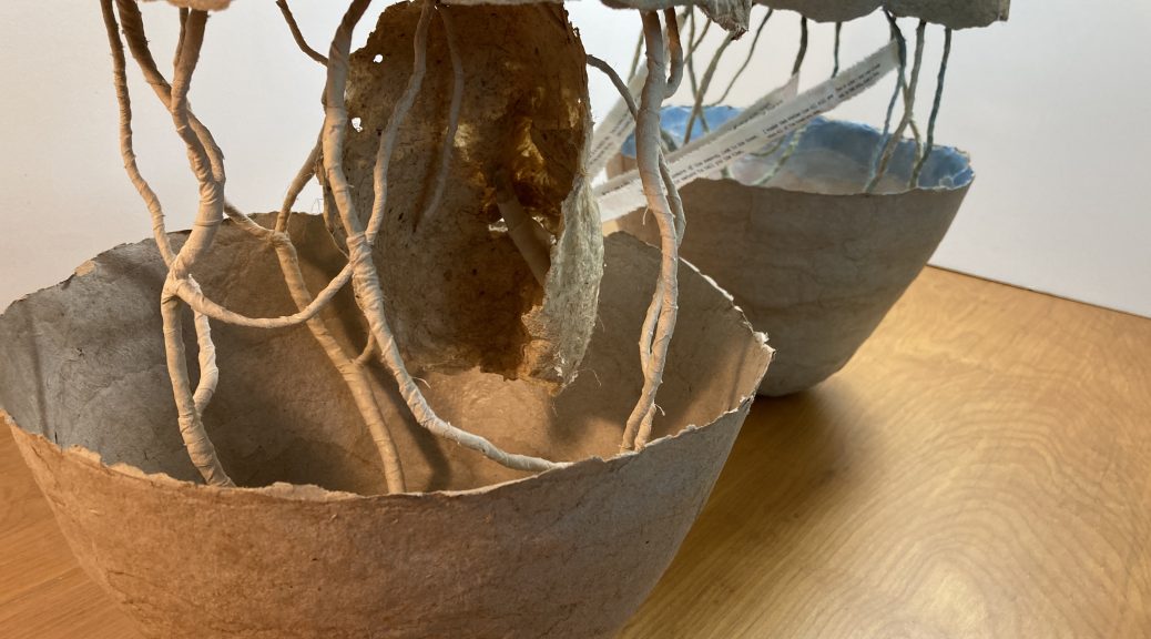 Was a thank you even offered to the trees before—cut, cleaned, and chipped to pulp—they became the paper and board that made this piece?