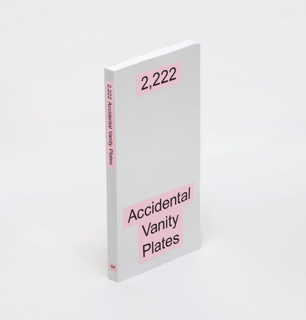 Book contains 2,222 photos of license plates which say things that I don’t think their owners paid for them to say. Edition of 22.