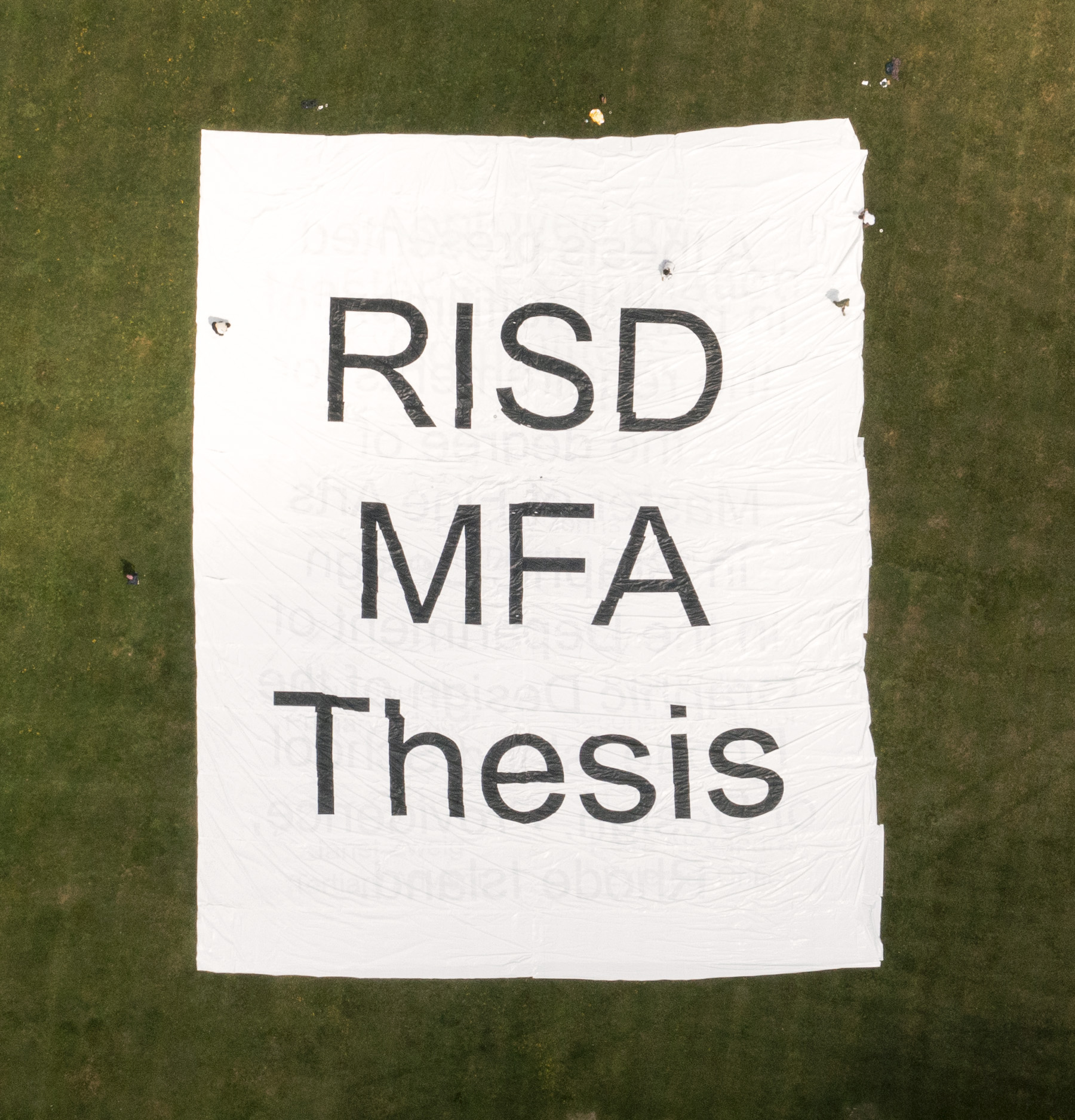 As a requirement for graduation, each MFA candidate at RISD produces a thesis book to be archived in the library. I think the graduate thesis, as a form, is a bit of a spectacle, a performance of academic accomplishment. Leaning into this, I made a thesis book that’s physically larger than the RISD library. It’s 200 x 125 ft when opened and takes at least four people to turn its pages. You can view drone documentation of the book being opened along with a list of all the people who helped make it a reality here.