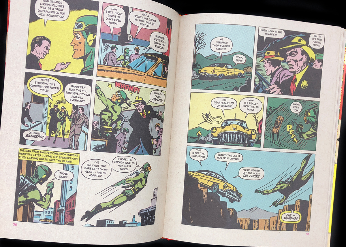 “It was a hellishly painstaking production process, actually,” concludes the artist, “but it allowed me to reflect on present-day perils while honoring the history of comics—and indulging my love of cursing. A trifecta!”