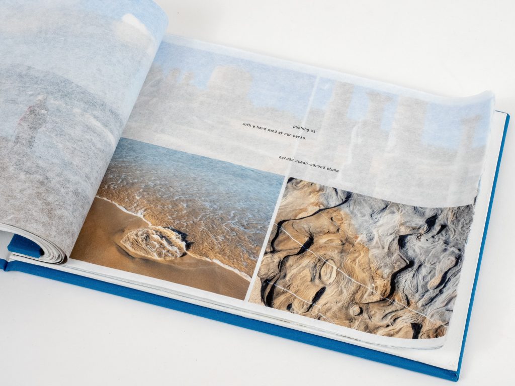 Walking Coast to Coast in Andalucía explores the transitional nature of our 2019 long walk, the slow flow of footsteps from one space to another over 435 kilometres and 22 days. Its seventy translucent pages of photographs, words and vague maps respond to the landscape as it unfurls along the path, seeping through from one page to the next, overlapping in complex ways.