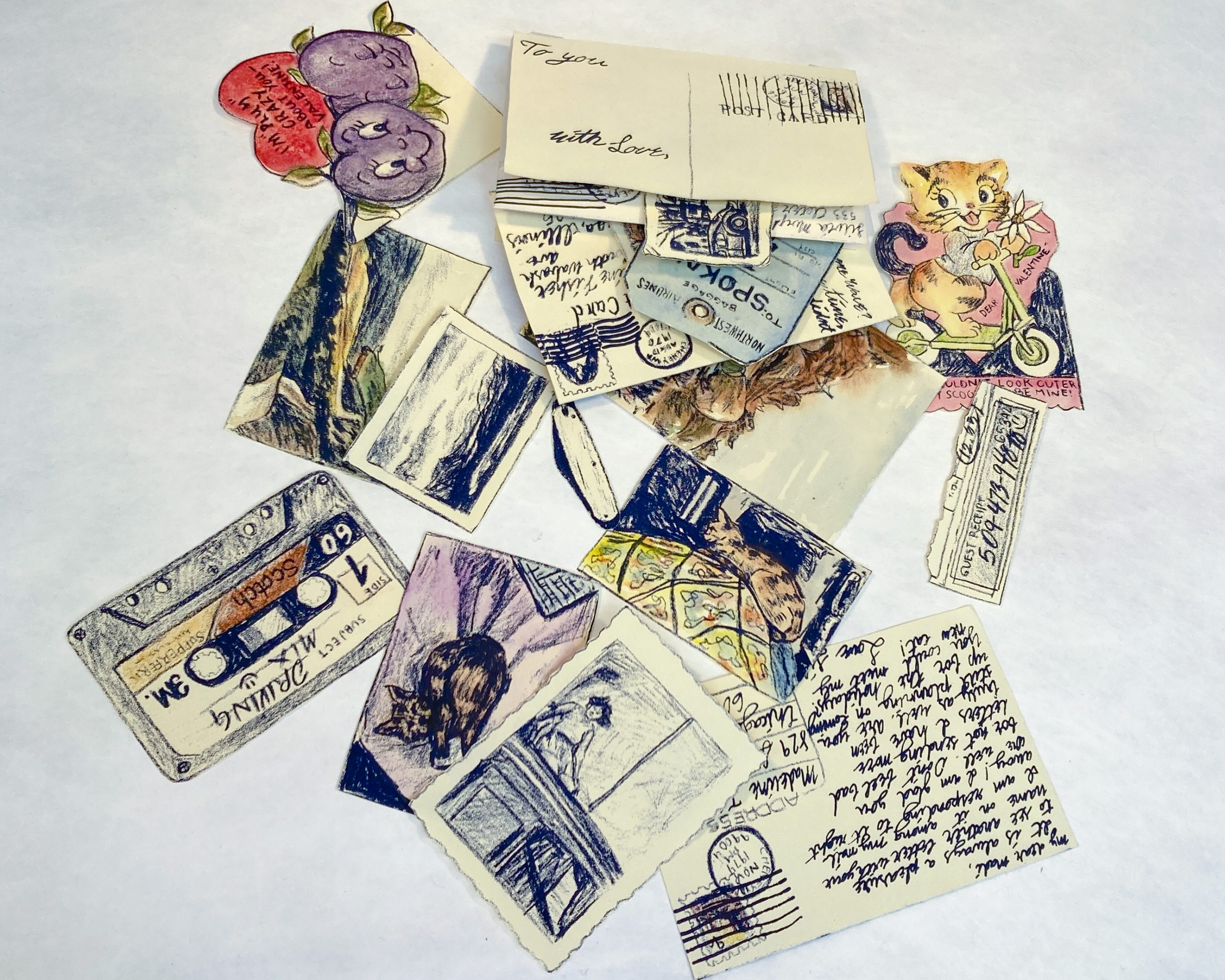 A fictional correspondence told through collected ephemera.