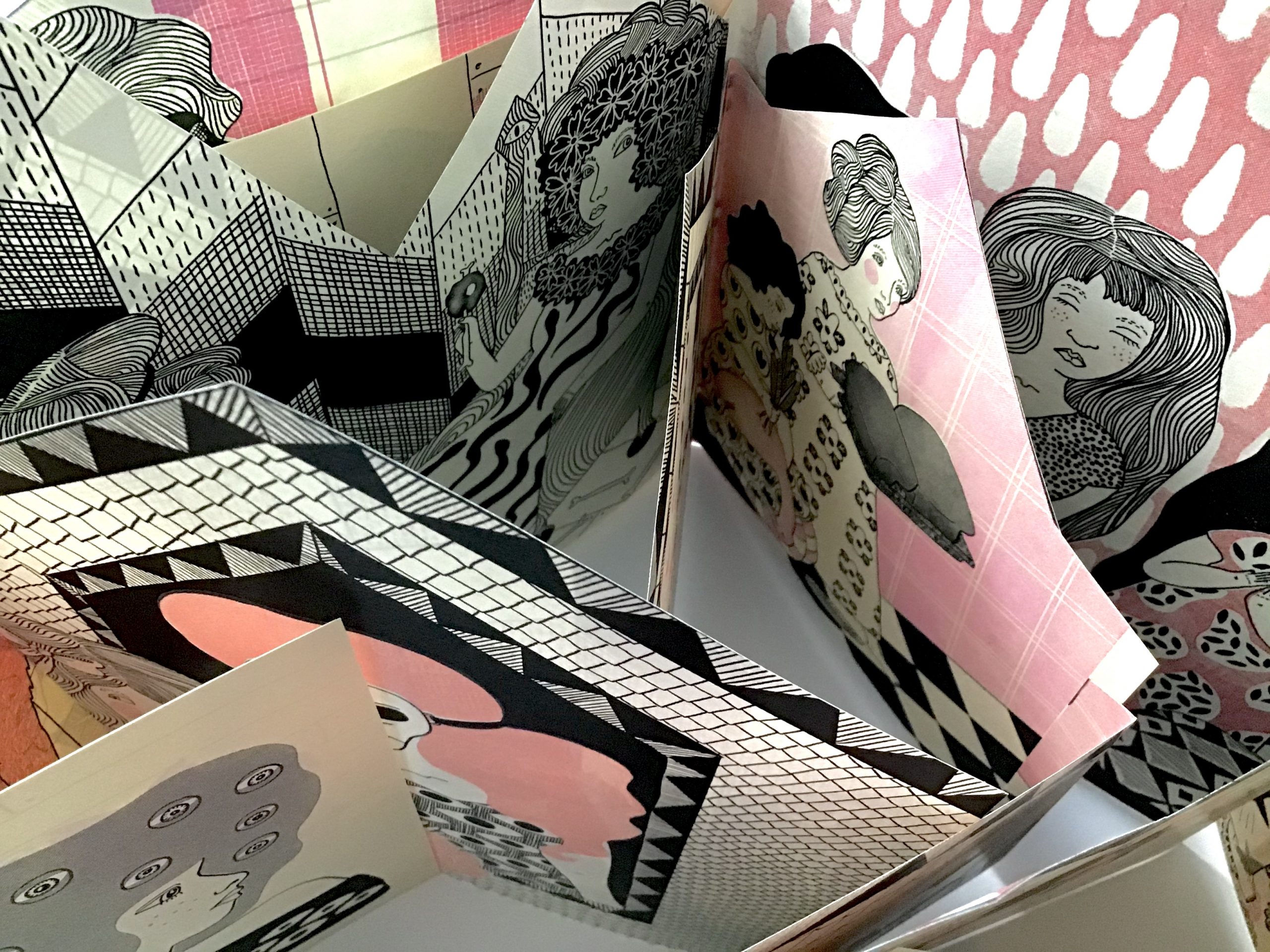 Using ink, watercolor, gouache, and graphite on paper I create work in a style I call folk surrealism. I’m focused on developing a visual narrative which I have been building over the past decade built with pattern, color, and line. I create pieces that draw viewers in with their bright colors and delicate line work but as the viewer delves deeper into the piece they find themselves immersed in a complex narrative. The narrative thread in my work is constantly evolving, each drawing is almost the next page in a wordless book. My work draws heavily upon folk tales and mythology as a means to examine themes of the modern world. I seek to twist narratives to make old themes feel new and of- the-moment.