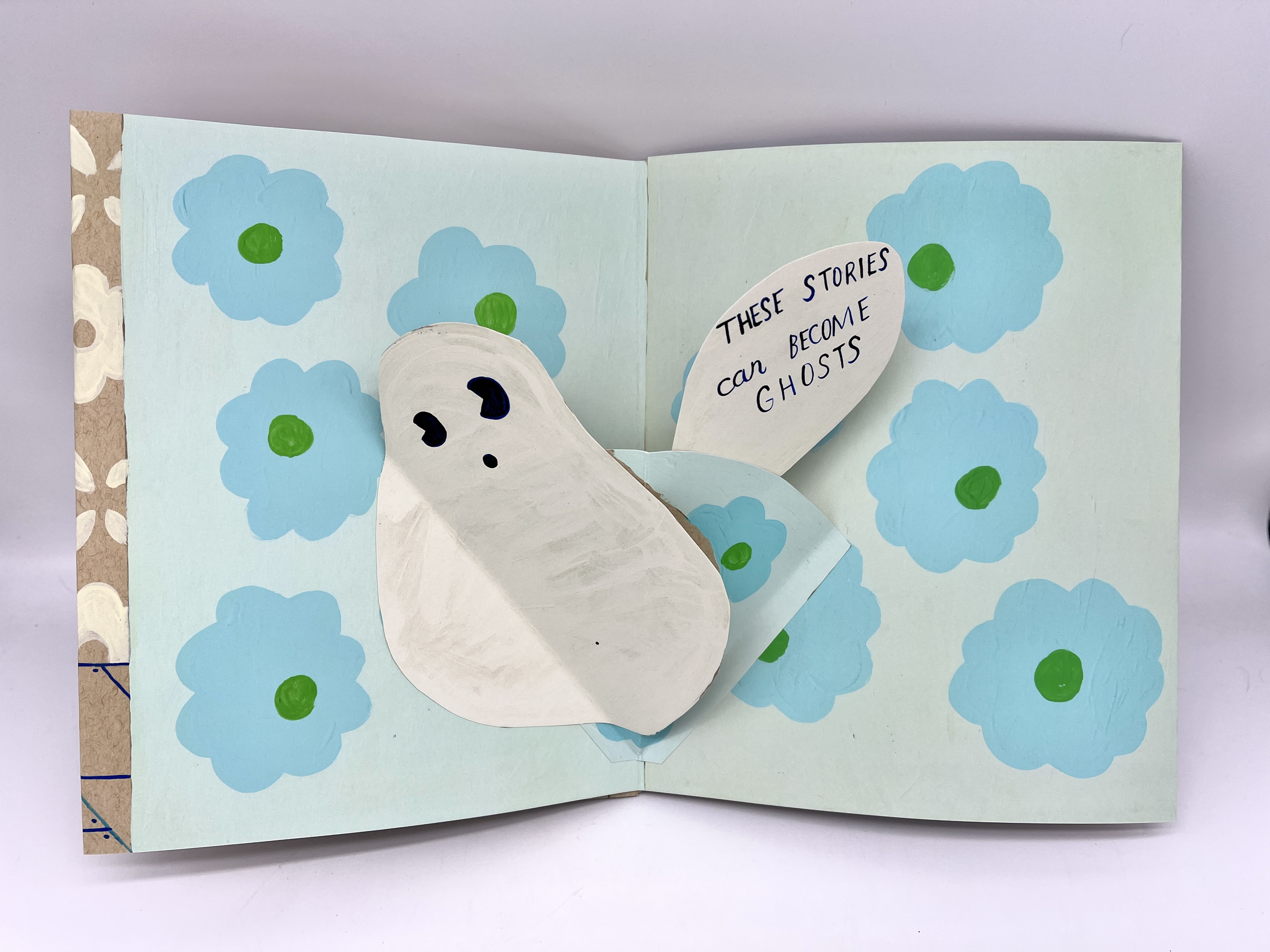 Sometimes There Are Stories was written during a very difficult time when my partner was recovering from a serious injury and I was recovering from my second surgery of 2023. I wanted a book that had a simple narrative that helped people to think about their personal stories and how they might affect their lives. I felt that using the form of a pop-up book added to the sense of discovery and hopefully added a little wonder and playfulness to what my be a tender subject.