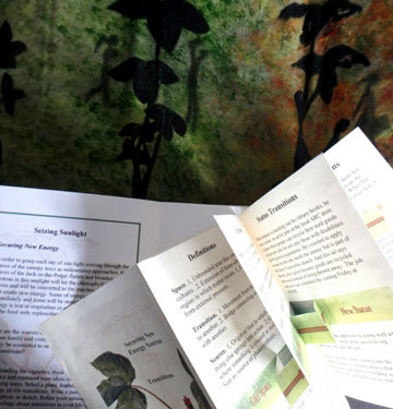 Jack-in-the-Pulpit: Through a Season contains five parts (energizing emergence, infusing impulse, seizing sunlight, netting nutrients, and respecting resources) that open to selected sketches and reflective observations. These further unfold to reveal relevant science and illustrations in the style of a biology- notebook.