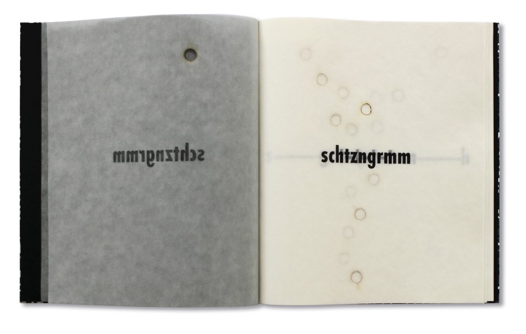 The poem “schtzngrmm” by Ernst Jandl consists entirely of the word “Schützengraben” (trench); in the Viennese dialect, when all of the vowels are removed, it becomes “schtzngrmm.” The consonants rearrange themselves into new syllables that evoke machine-gun volleys and grenade strikes, painting an onomatopoetic picture of trench warfare. The text belongs to the tradition of concrete poetry and sound poetry and is one of the antiwar poems of the 1960s.