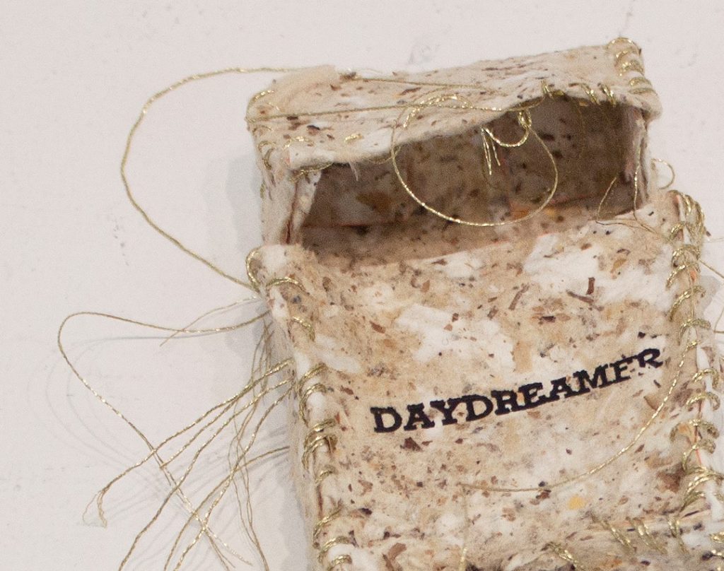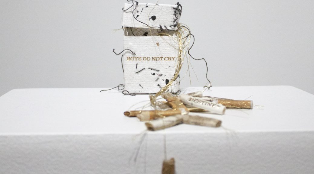 Secrettes is made up of handmade paper from cigarettes and stitched together with golden threads. Smoking is often associated with male figures, a common symbol for the masculinity in the media. Males are not allowed to express their fragility due to gender rules and social stereotypes. Be strong, be tough, and be powerful are characteristics that society expects men to embody. With the texts on the cigarette butts, I wanted to deliver the idea of the struggle and fear of being a failure, a desire of making right decisions because men are asked to be responsible and successful. I have realized that smoking is a moment of reviewing the contradiction between the ideal and reality, a personal space for meditation, and a conversation within the self. It is not the behavior of smoking; it is about the process of introspection. It is an initiative for finding isolation, and a seeking for a private moment.