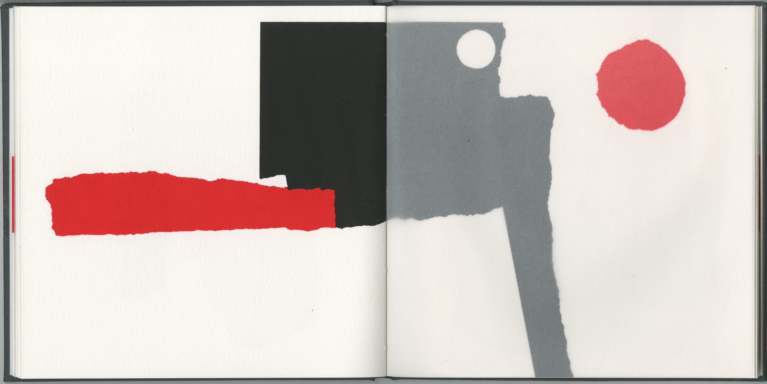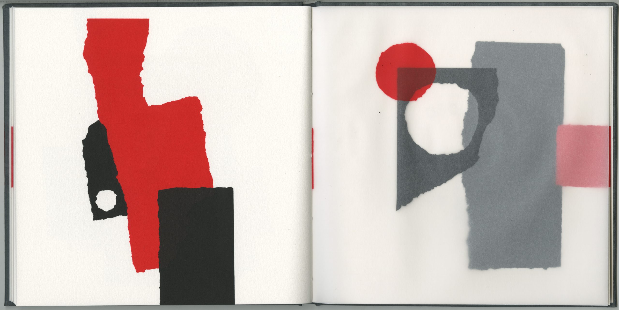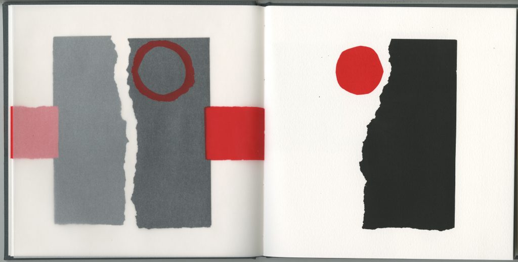 screen printed in 2 colours on BFK Rives and 150gsm acid-free tracing paper; case- bound with screen printed cover