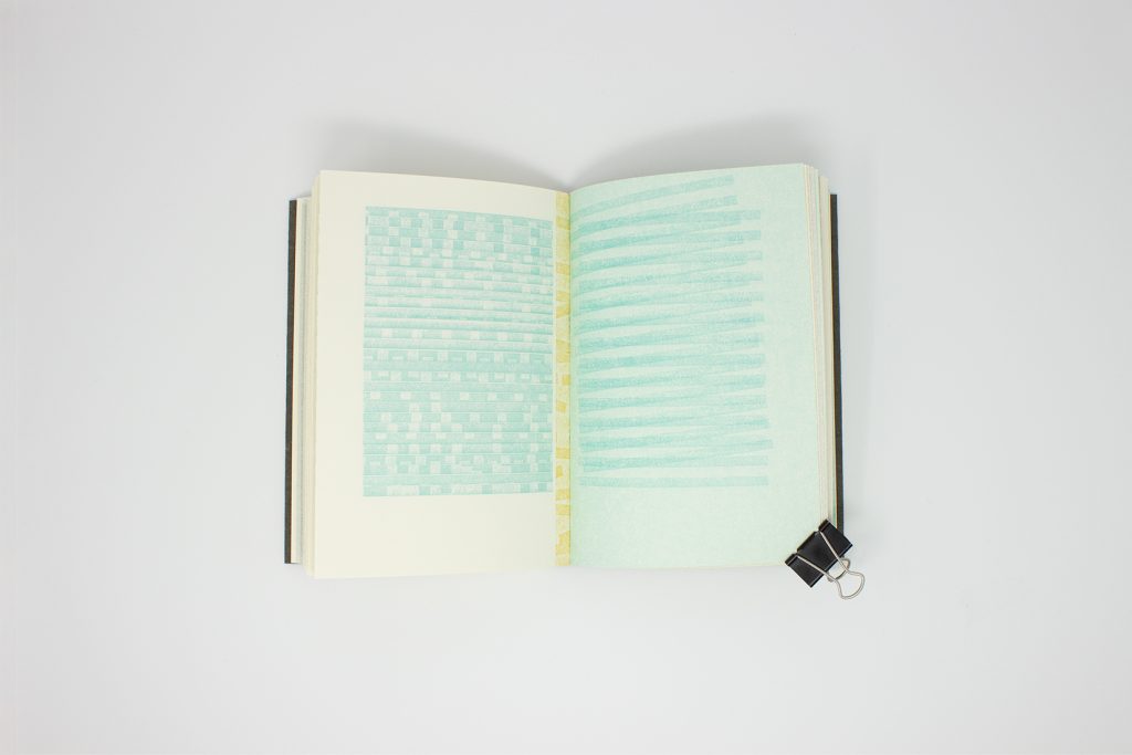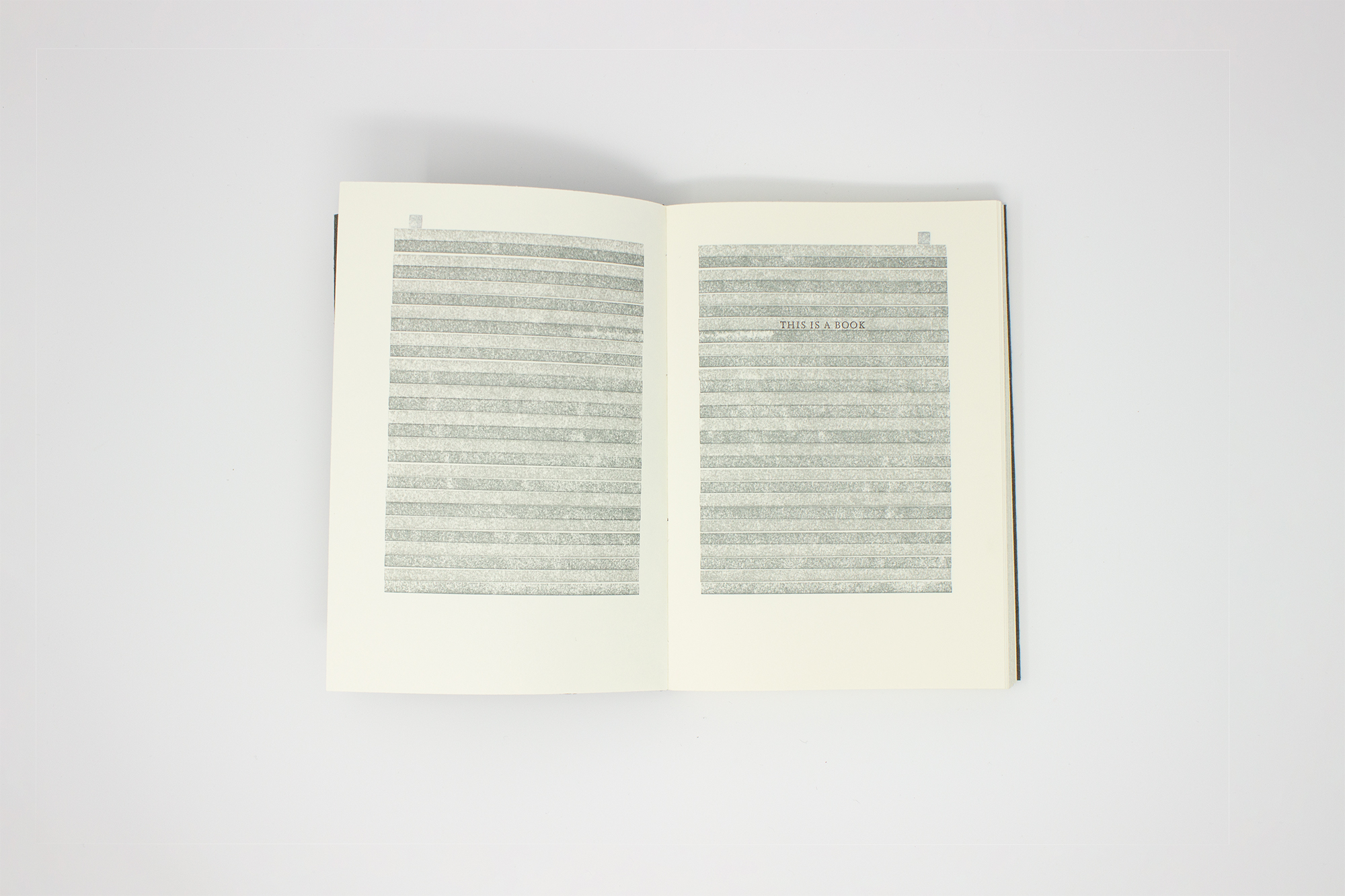 This Is a Book is an asemic text that blurs the line between text and image. Geometric shapes and textures can be read and a narrative slowly unfolds. The letterpress-printed shapes come from an analysis of the typography of Della Scienza Mecanica by Galileo Galilei (Ravenna, 1649). The shapes of the text are simplified, and throughout the book they are increasingly disrupted, repeated and varied until they no longer resemble the original text. The book begins with rigidity and restraint, and readers are invited to witness them slowly relax and become more playful and self-aware.