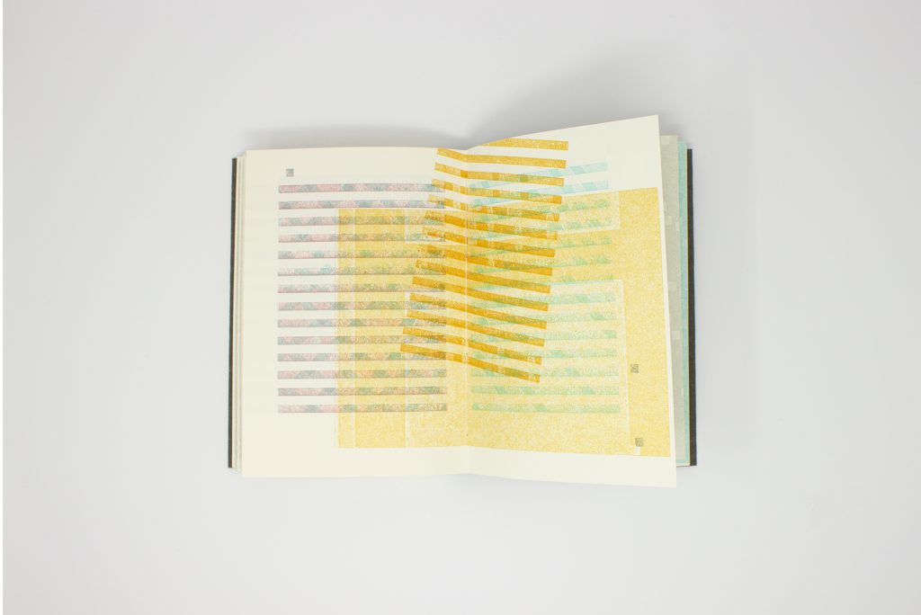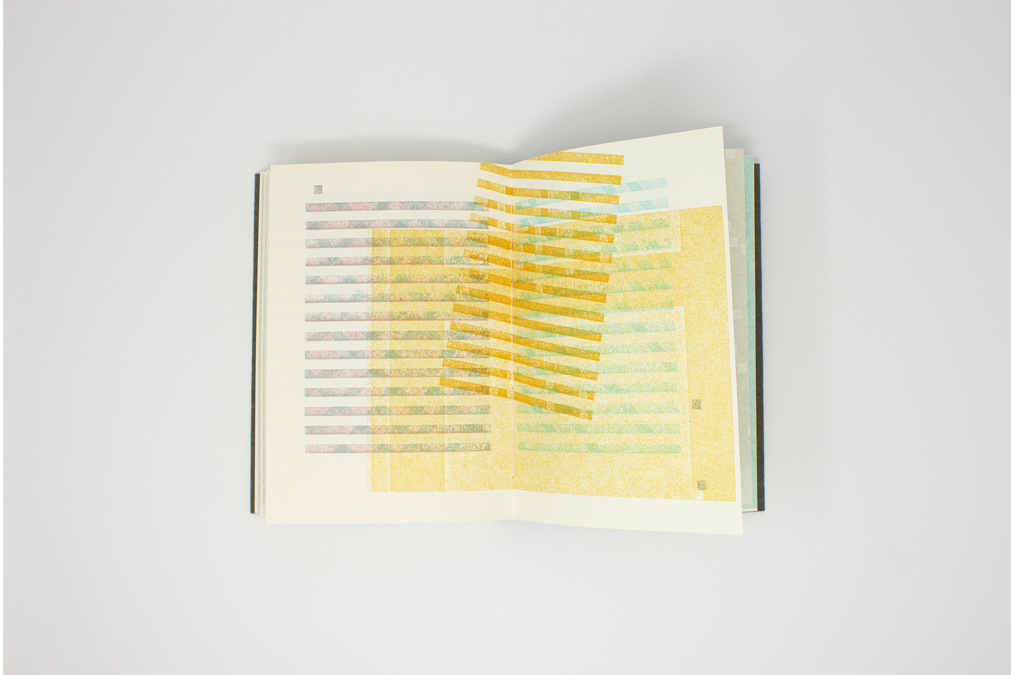 This one-of-a-kind artist’s book is a technical exploration combining relief and pressure printing. The relief blocks are cut from a sheet of PVC plastic, resulting in a unique texture that blends with the characteristic fuzziness of pressure prints.