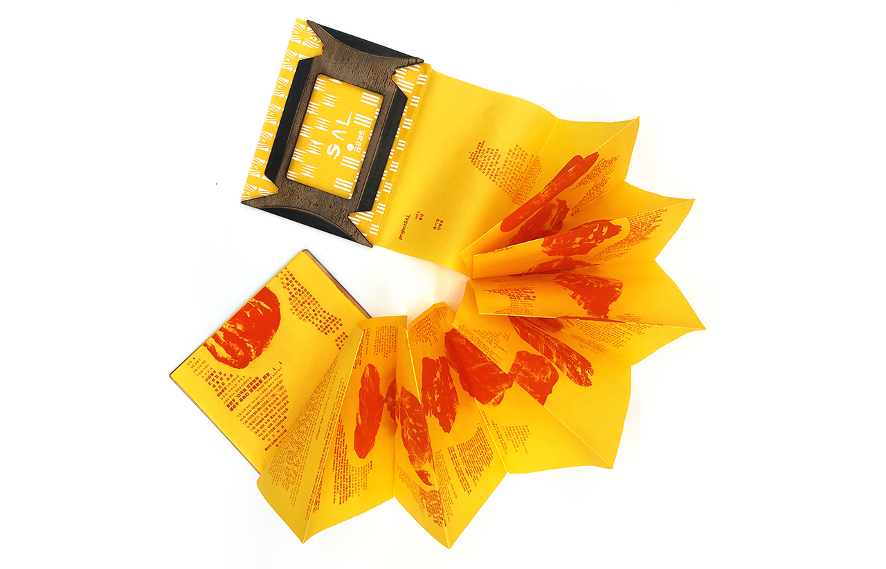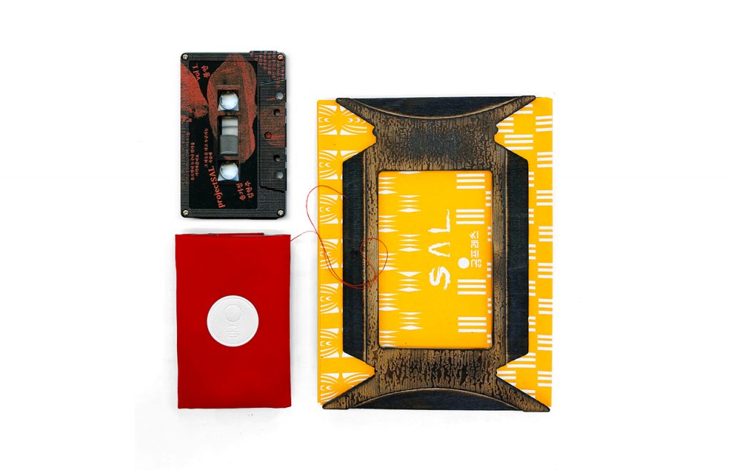 project SAL’s music album & book art, burnt birch wood, korean traditional paper, traditional silk, cassette tape, silk screen print
