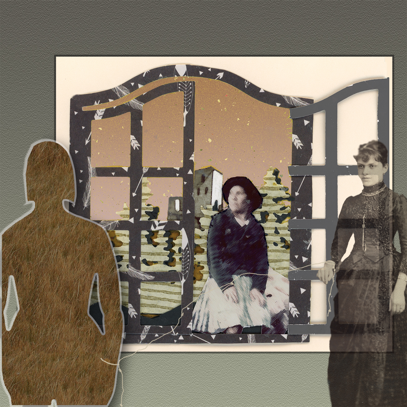 The story appears along with my collaged images in the spreads, in text either handwritten or typed, placed in small envelopes or incorporated with collage elements.