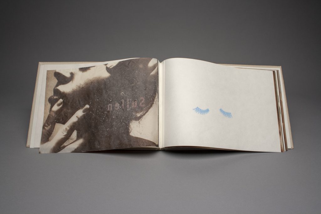 I combine text and visual images that relate to these struggles, focusing, in particular, on my own individual experiences with and perspectives on these matters. I self-consciously combine media as well as elements of text to critique gendered prejudices related to the body for my prints and artist books. I move freely between non-silver processes, such as Vandyke brown, and other techniques such as papermaking, printmaking, and letterpress printed elements. I often introduce new methods and mediums, working across artistic disciplines and in layers, analogous to the stratification of emotions that run deep within us. By exposing and covering, excavating and burying through the layers of my work, I explore my own vulnerabilities as an index of larger, universal insecurities plaguing all women. I likewise consider how emotions intermix with other memories and feelings to create something unique and irrational, a concept I aim to expose in my artwork.