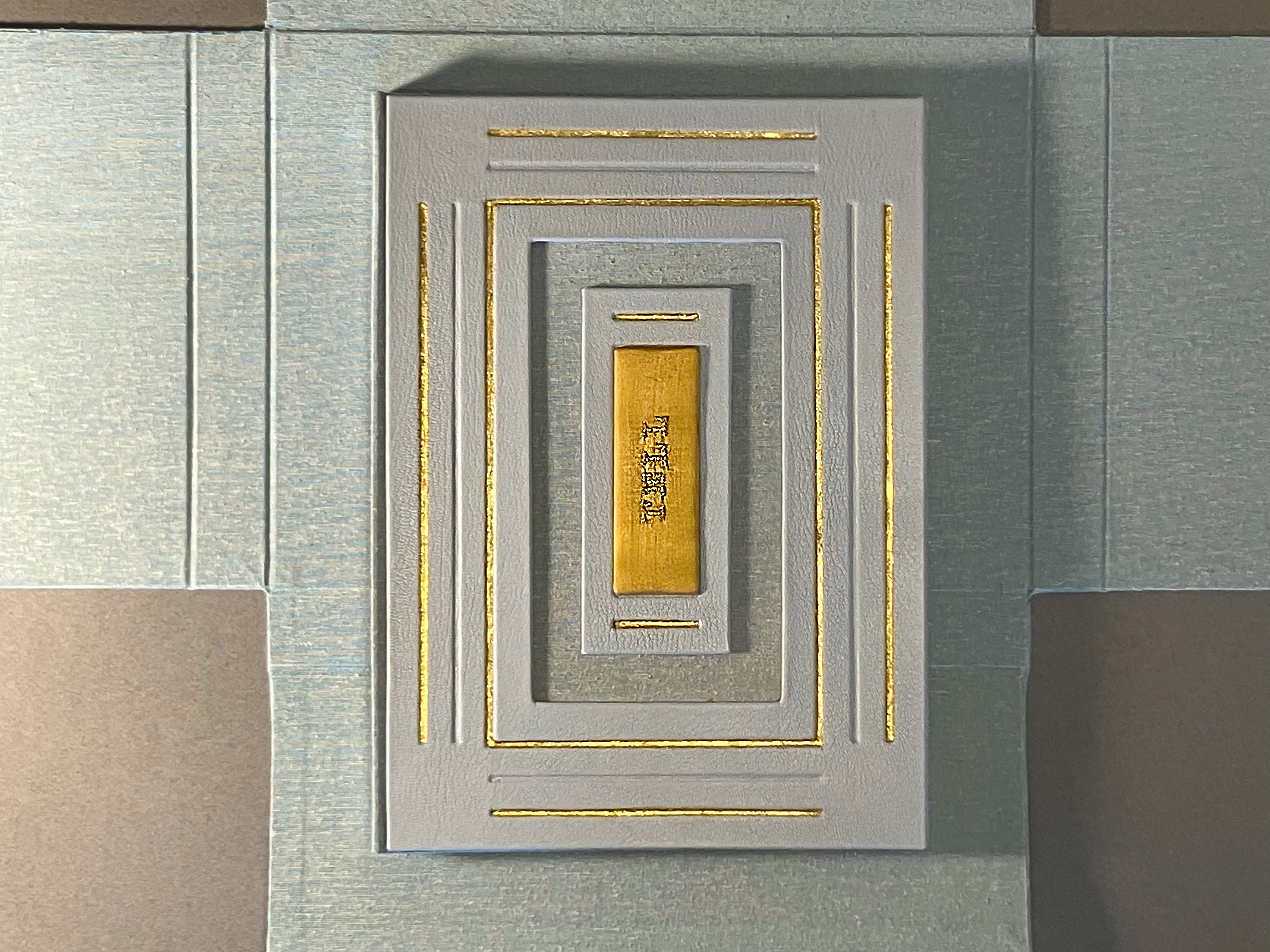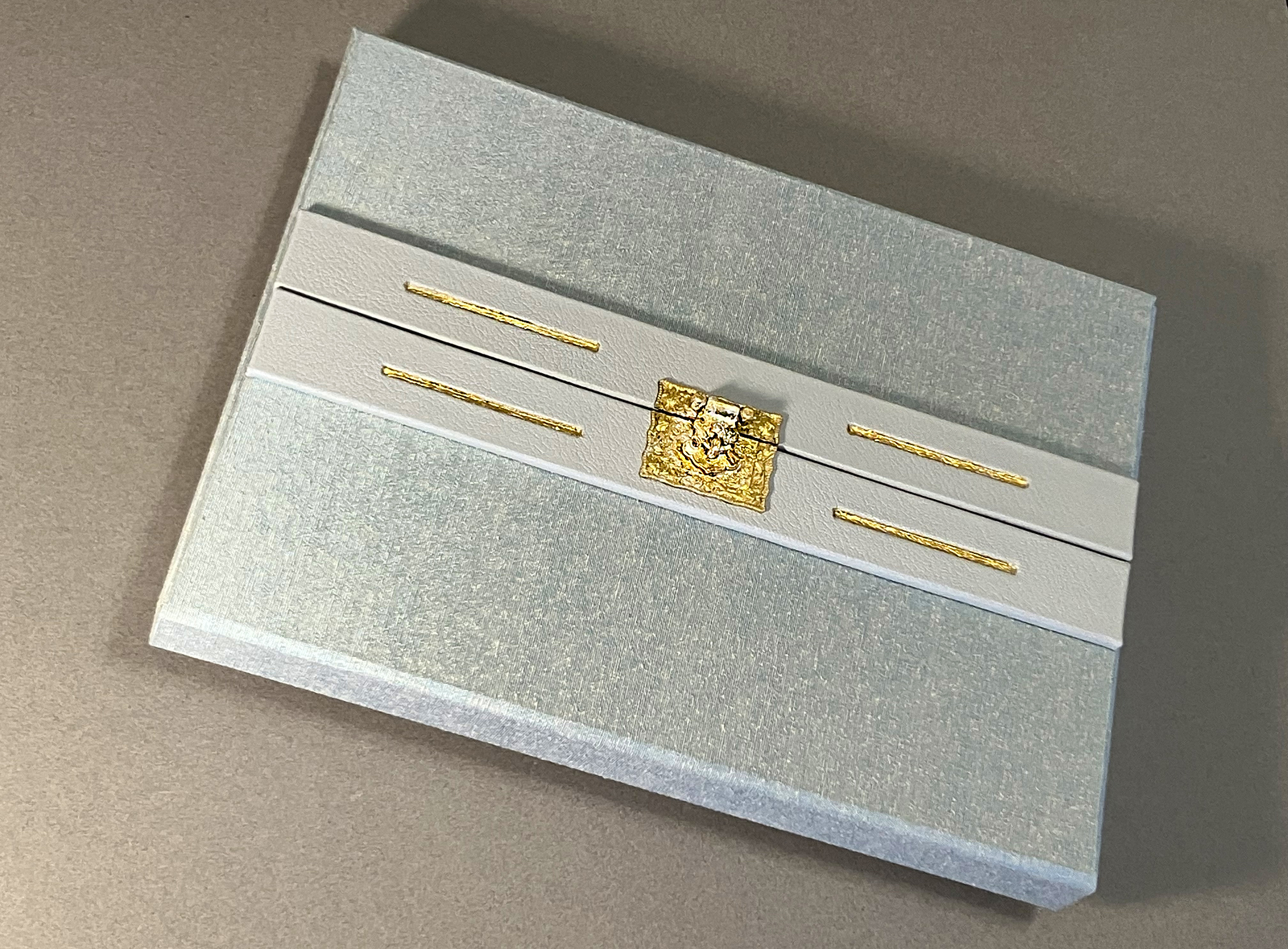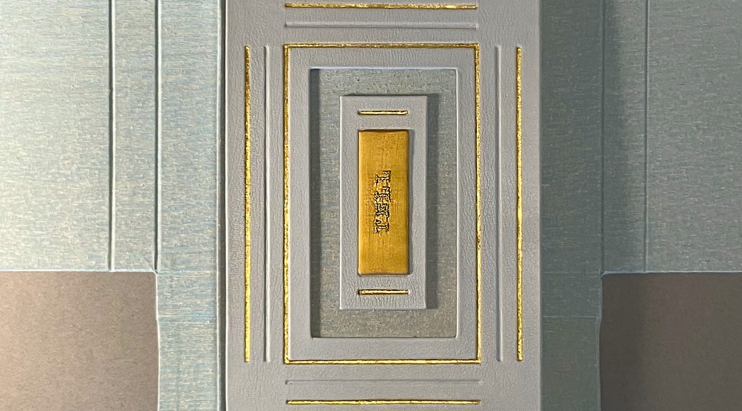 TELL (self-observations of a paramnesiac) is inspired by ancient craft, specifically the medieval codex, and bound and decorated with stylized leather tooling and gold and silver gilding. Archaic, even anachronistic, my purpose in employing this approach is to suggest historic, ongoing human relationships with elevated craft, alongside an almost undeniable attraction to sumptuousness, again as evidenced in the medieval codex with its lavishly illuminated and rubricated religious and instructive imagery and texts.