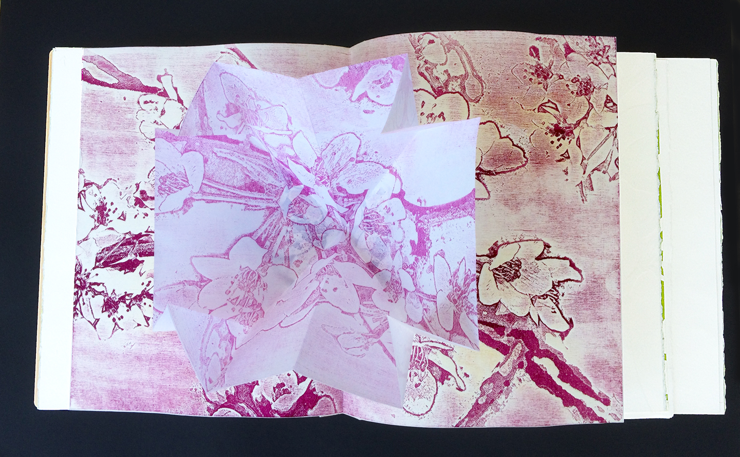 pop-up two poems folio – authored by artist, on green leaf design base