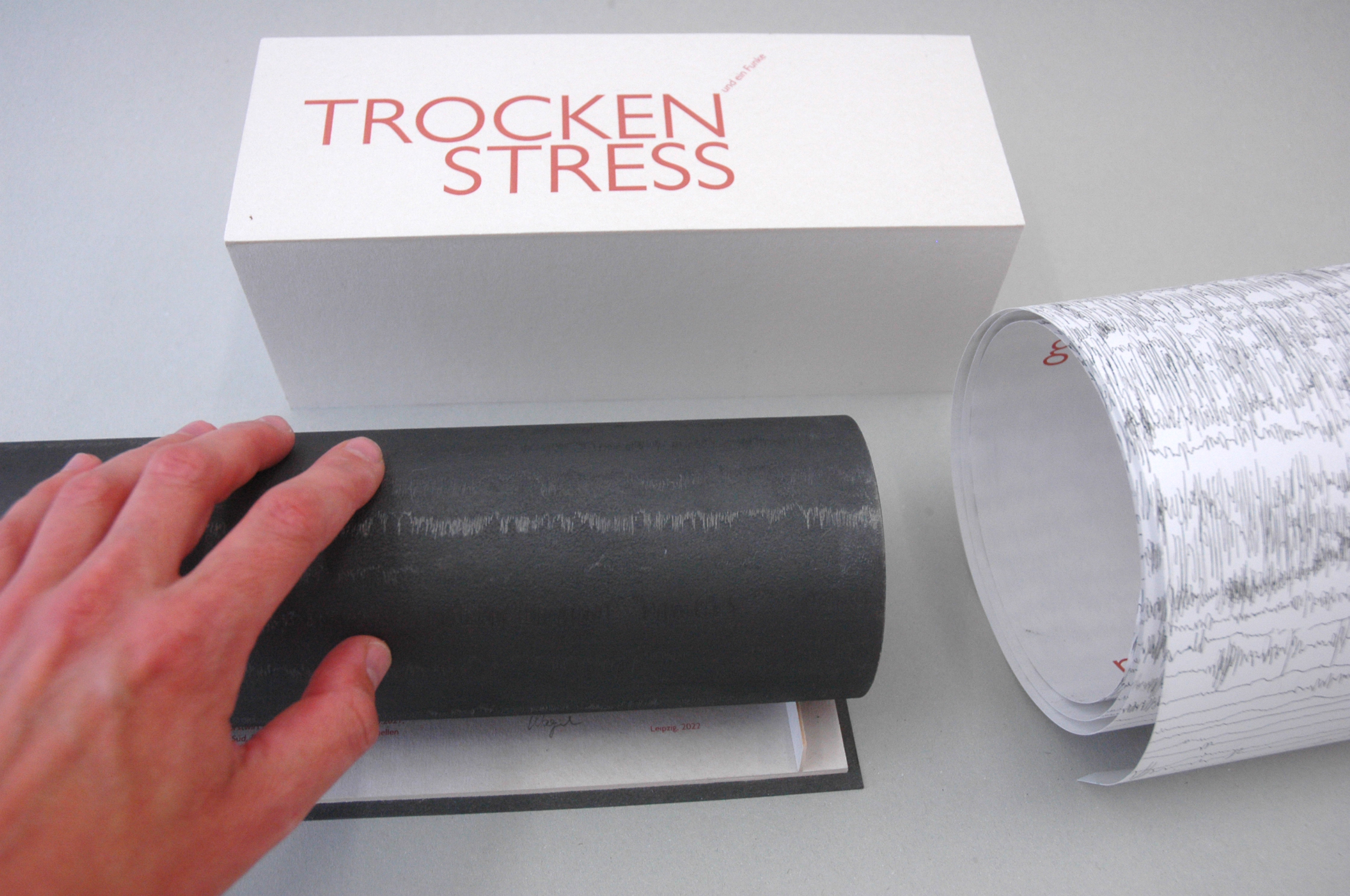 Artist Statement and description of the book: Mind and intuition, the before and after, the haptics of the material and the fleetingness of a touch form the basis of my artist books. In them, I search for processes that usually run under our radar – be they too mundane or apart from our senses – and try to find images, forms or sounds for them. Meandering between science and my imagination, translated into words, graphics, embossing or folding techniques, I give form to the scratching of fingernails on wood or show how sound waves waft through the body.