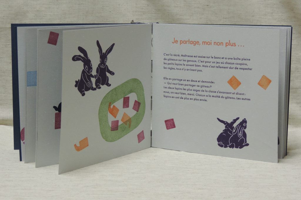 ive short stories about a lively little rabbit who innocently says things he shouldnt. These stories are based on what really happened sometimes during the book and art classes I taught for many years to children in French schools of my neighbourhood. Of course I adapted the « real facts » for the needs of the narrative from time to time. I made a translation of the stories into English for you, but some of the French wordplay cannot be rendered