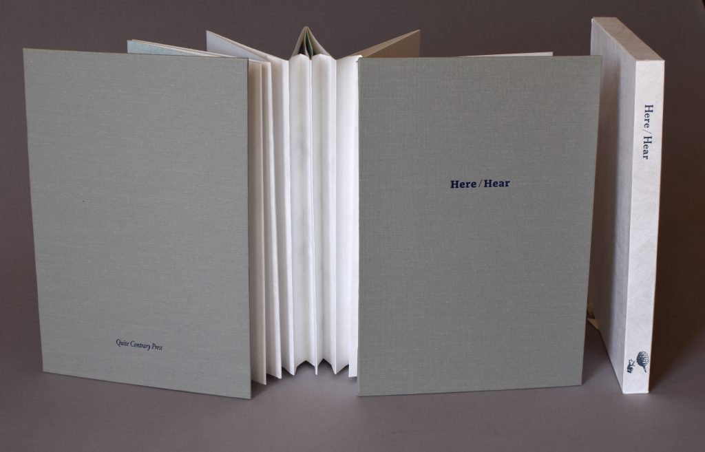 Photopolymer intaglio, letterpress polymer, pressure printing, handset type on Rives BFK. Tyvek spine after Hedi Kyle, cloth covers, Tyvek slipcover.