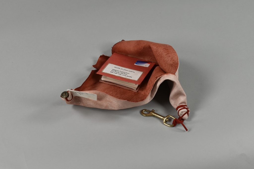 Open [the leather piece], untie the leather cord in the middle of the book, remove the book from the leather piece, and seal the book jacket closed. Then you can put the book in the mail. The leather and cord are yours to keep, repurpose, or give away.