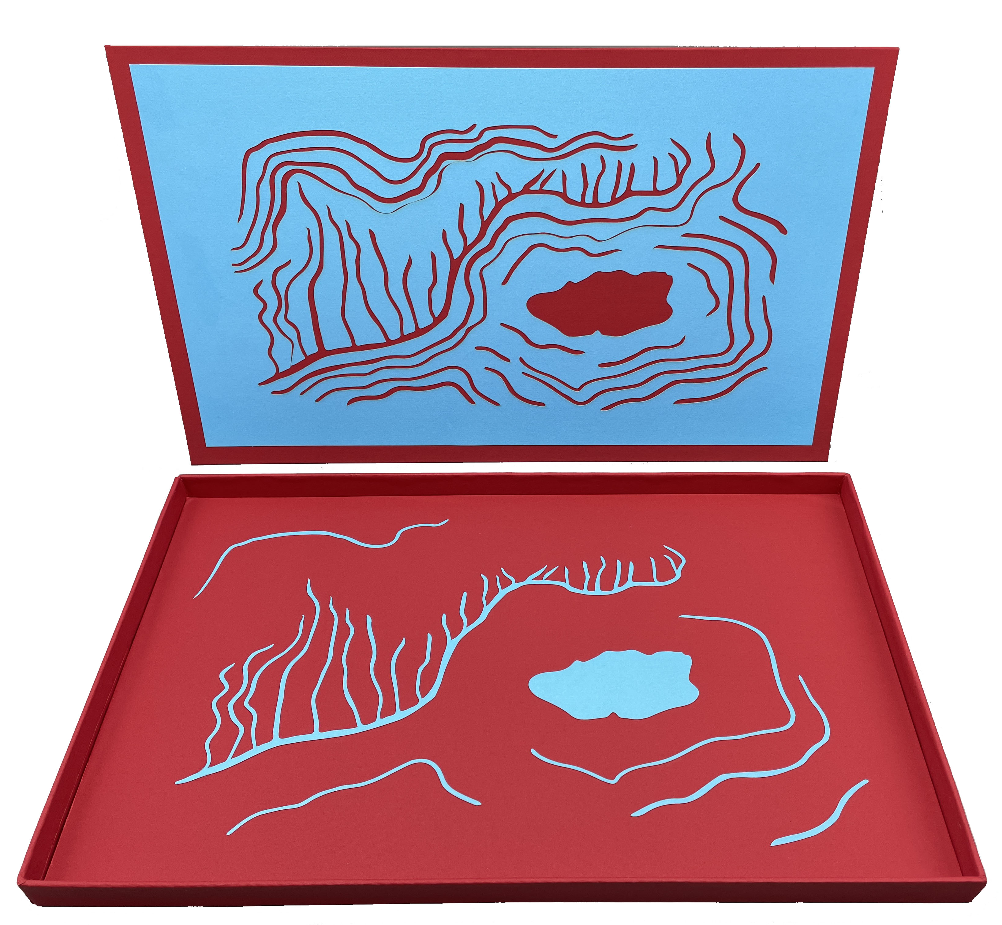 Acrylic, charcoal, gesso, graphite and ink on a single sheet of spiral-folded Okawara paper with letterpress and screen printing. One-of-a-kind.