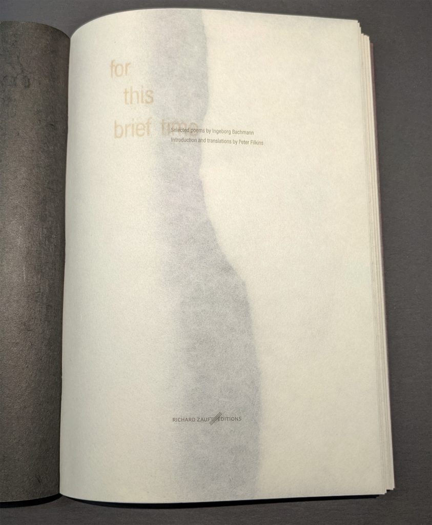 For This Brief Time, selected poems by Ingeborg Bachmann
