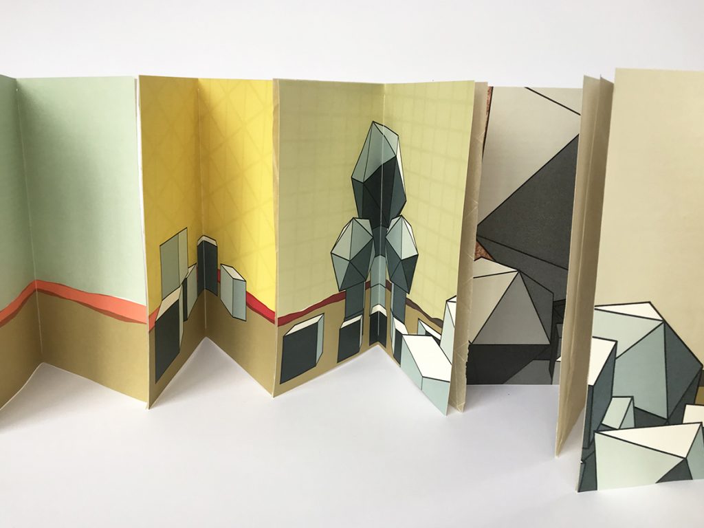 In The Radiant Republic, a five-part narrative describes the life cycle of an imagined city using unedited language woven together from the original sources. Each part is bound separately as a pamphlet, and contains one section of an interlocking landscape with no fixed beginning or end. Platonic solids, a set of five shapes made up of equilateral faces set at equal angles, feature heavily in the printed imagery. Since ancient times, these shapes have been venerated as physical manifestations of perfection of form. But one cannot create a perfect object, and one cannot build a perfect city. This is a book about the voices we value, the ideals they espouse, and the consequences of venerating their views.