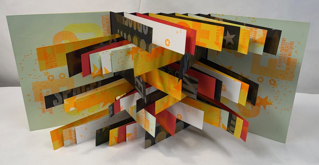 Space: Known/Unknown is a collaborative project between Lauren Emeritz and Sarah Matthews. They explore the universe of book arts using “space” as a metaphor and immerse themselves in all the possibilities of letterpress and sculptural book techniques.