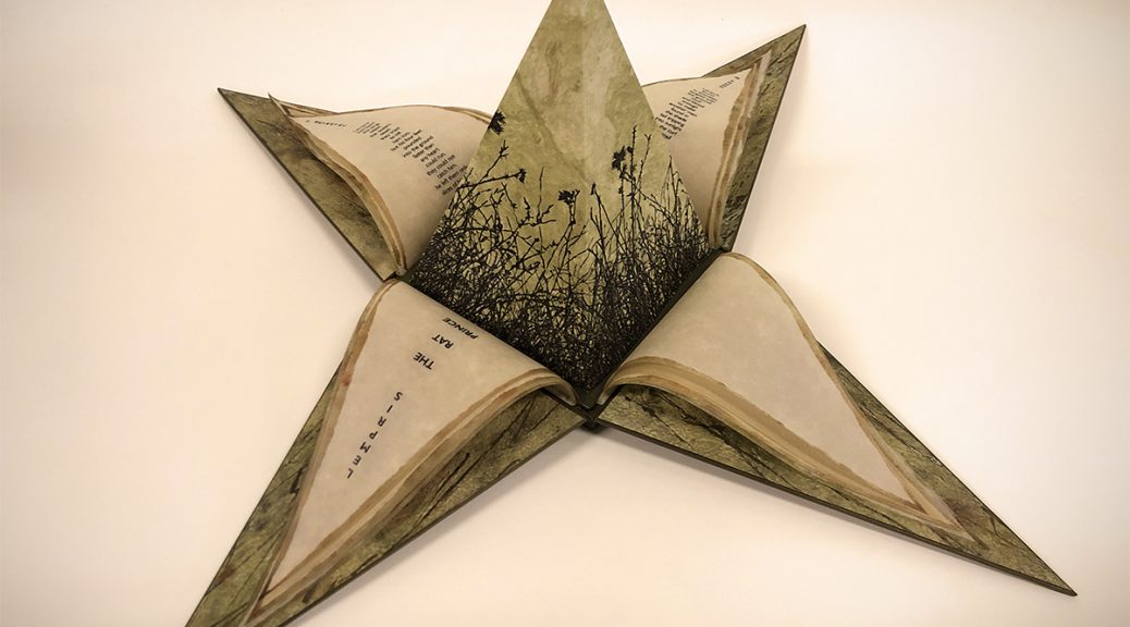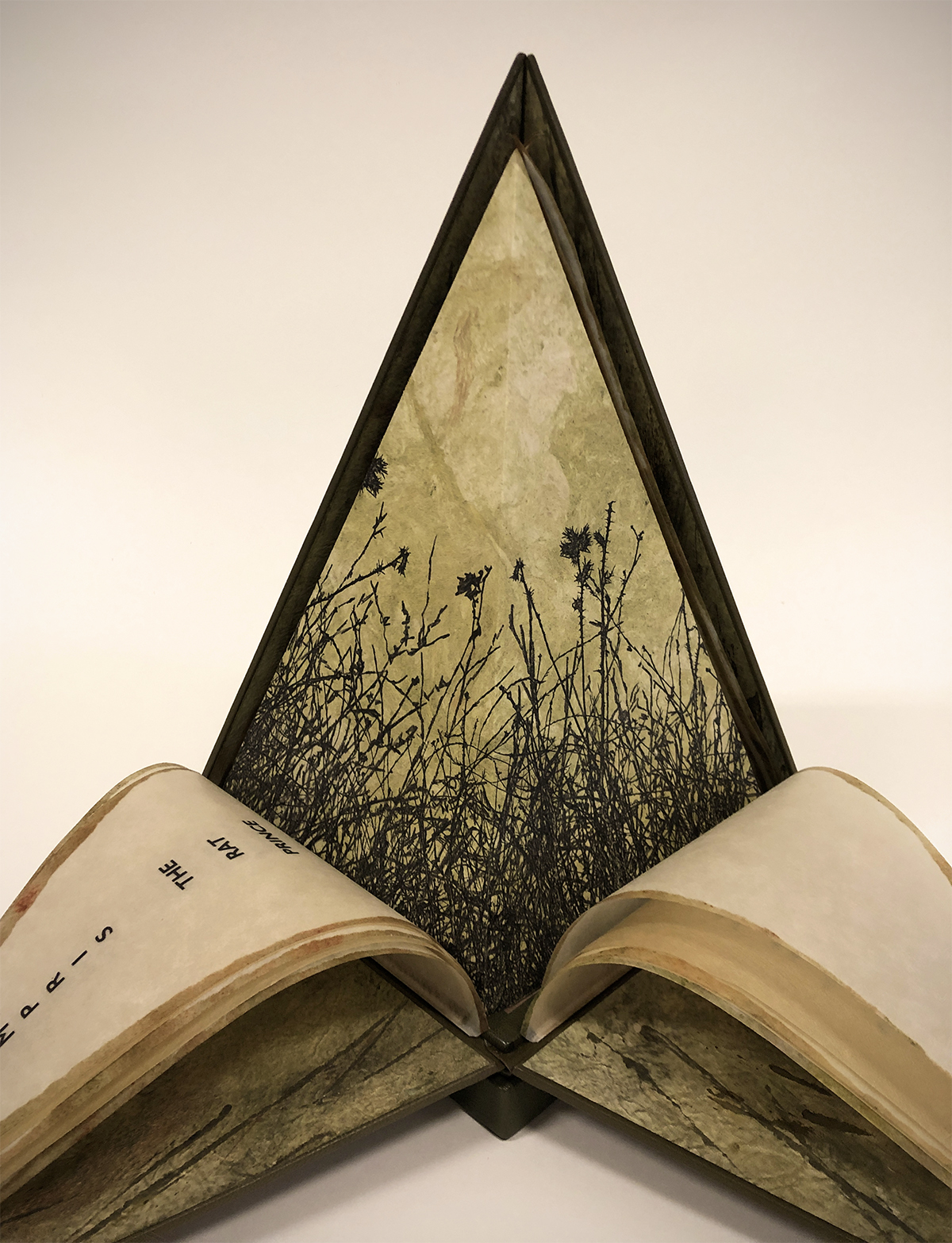 As the project progressed, and always important, was the experience of interacting with the book: feeling, hearing, smelling, seeing the work. Interactions with books as art objects should be sensuous and playful. Having a mischief of paper rats in the studio at all times helped a lot!