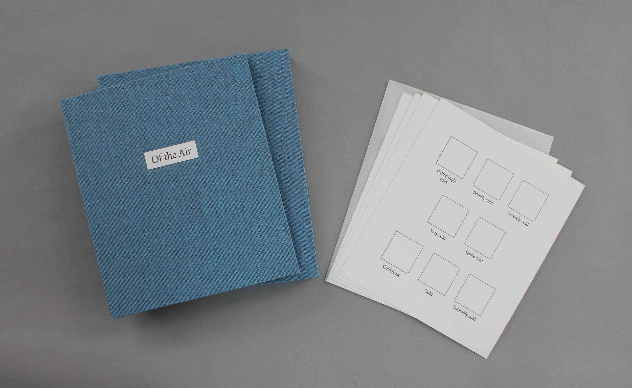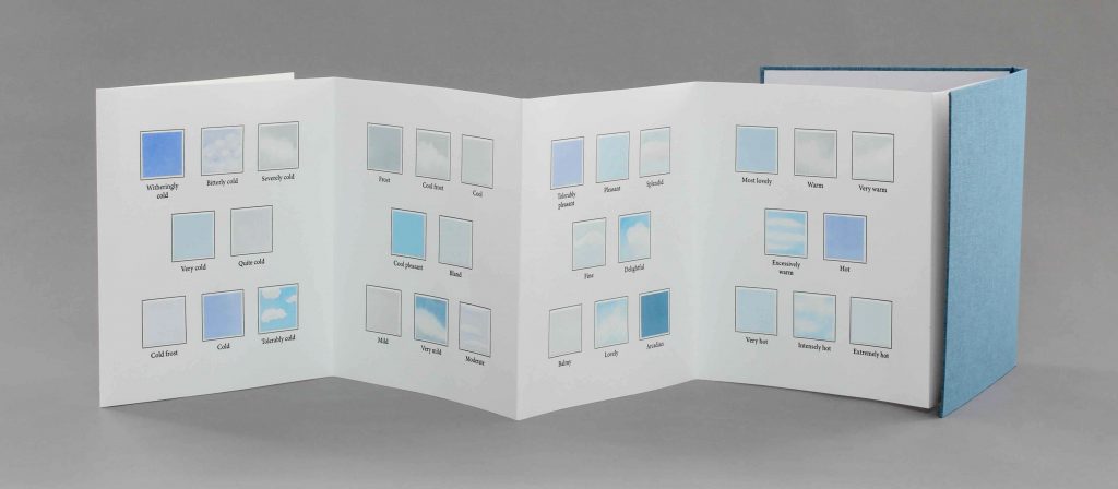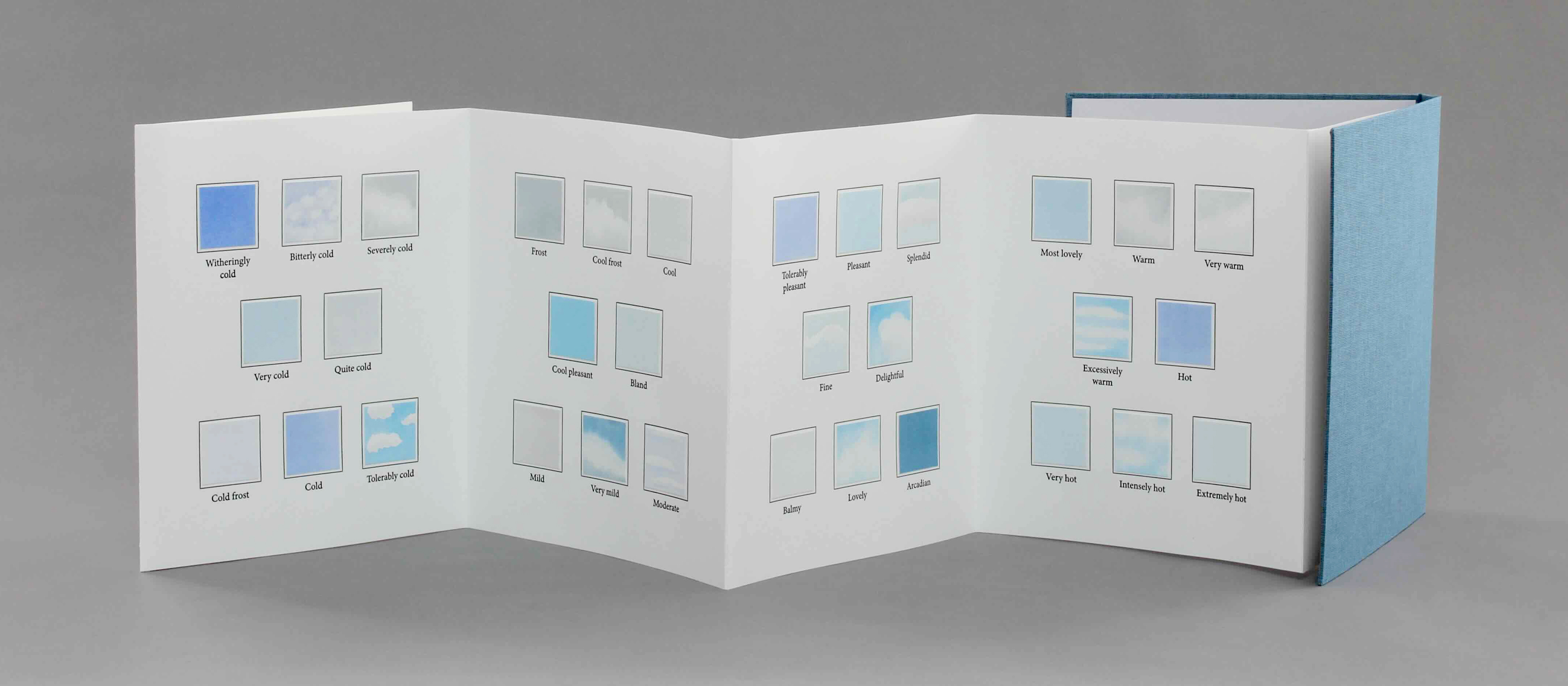 One visual interpretation of these weather terms is shown in this book, but an additional set of the printed pages is provided as cards. These allow for a reader to also create their own translation of words into a visual representation, whether a single person mounts their own paintings, or the cards are reproduced for multiple people or iterations of the process.