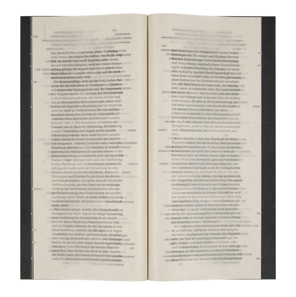 The printing approval procedure for “If On A Winter‘s Night A Traveler“ can be found in the Federal Archives under the designation BArch DR 1 / 2385. In this artist‘s book, I have quoted a passage from Calvino‘s novel in which Arkadian Porphyritsch justifies the censorship with the love and appreciation of literature.