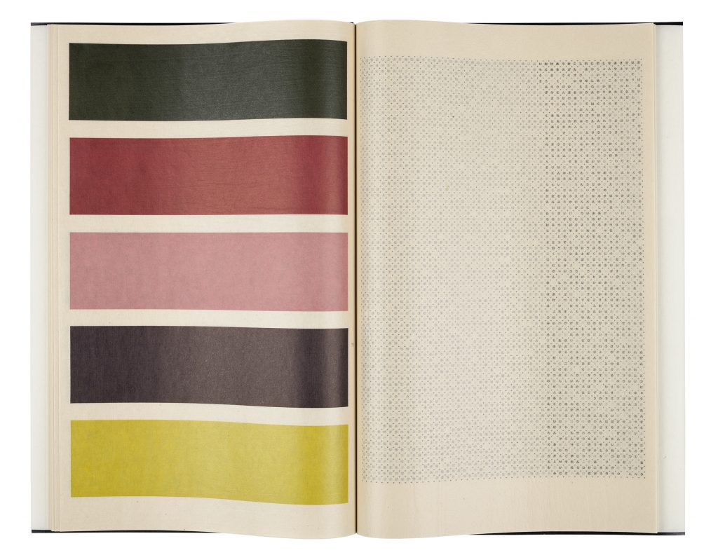 A third section deals with colors, which are mentioned in the original text. Twenty shades of color are printed as individual blocks spread over four pages; here, too, they are the shades I imagined when I read the text. As with the objects, they reflect my subjective perception.