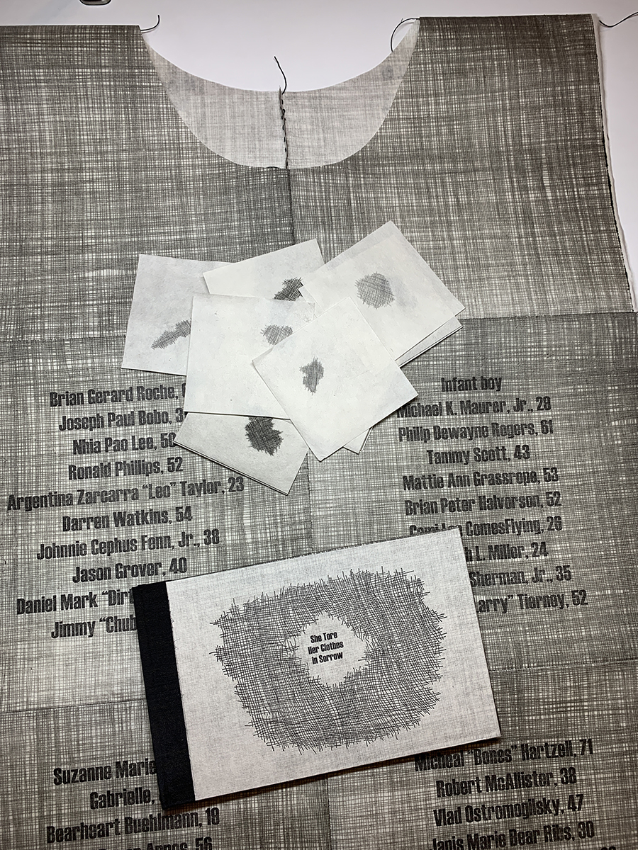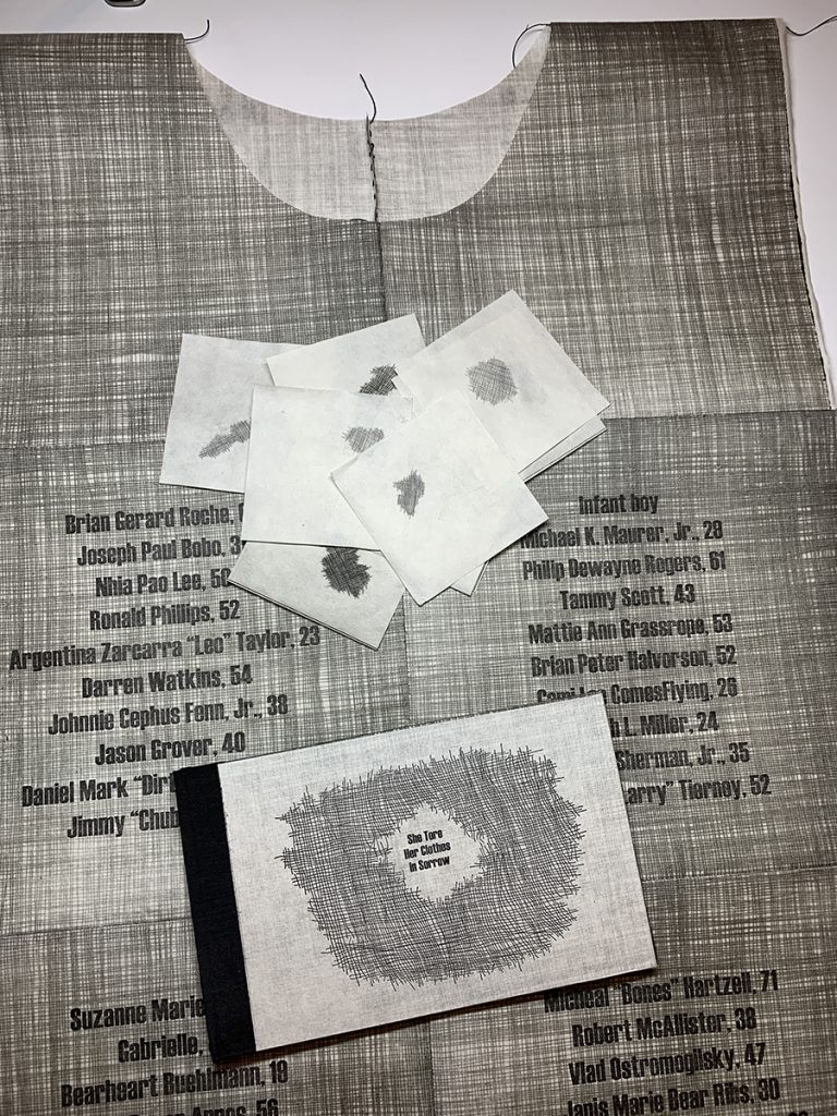 In recognition of the connectedness between all beings, whether they have homes or not, She Tore Her Clothes in Sorrow memorializes the lives of those who lives did, in fact, matter. They may have felt unseen, unsupported, unloved while alive. My artist book raises the lives of these people to a place of dignity. May we see those who are homeless with newly opened eyes and hearts.