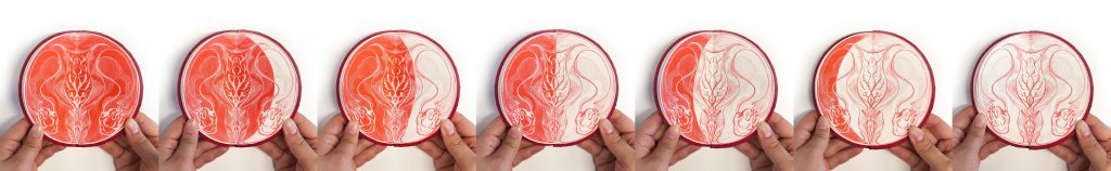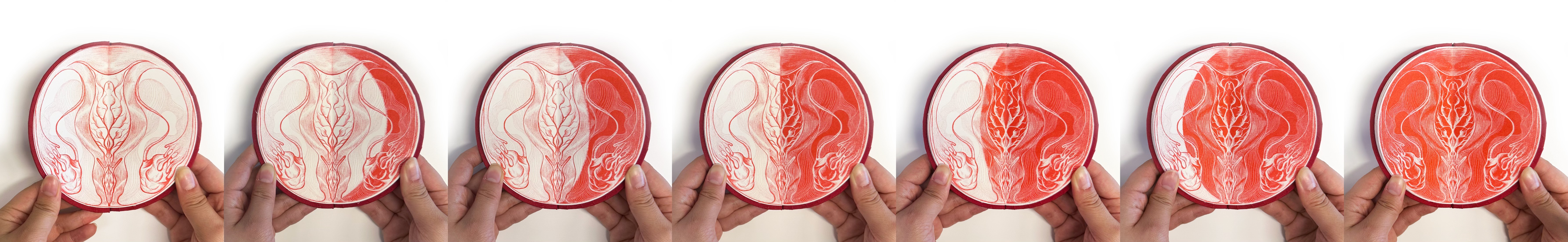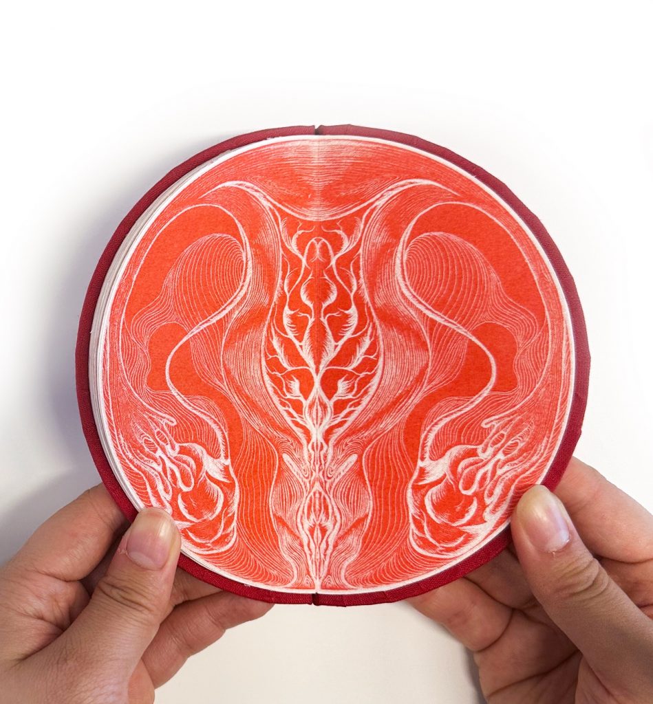Like the moon’s influence on Earth’s tides, women’s menstrual cycles mirror the ebb and flow within our bodies. This 13-page book is crafted through RISO printing on hand-cut paper, enclosed within a silkscreened hardcover. Each page symbolizes the interconnectedness of women with the celestial rhythms, embodying the profound connection between lunar cycles and feminine essence. This work honors and explores the universal tide that unites women, highlighting the beauty and significance of this natural synchronicity.