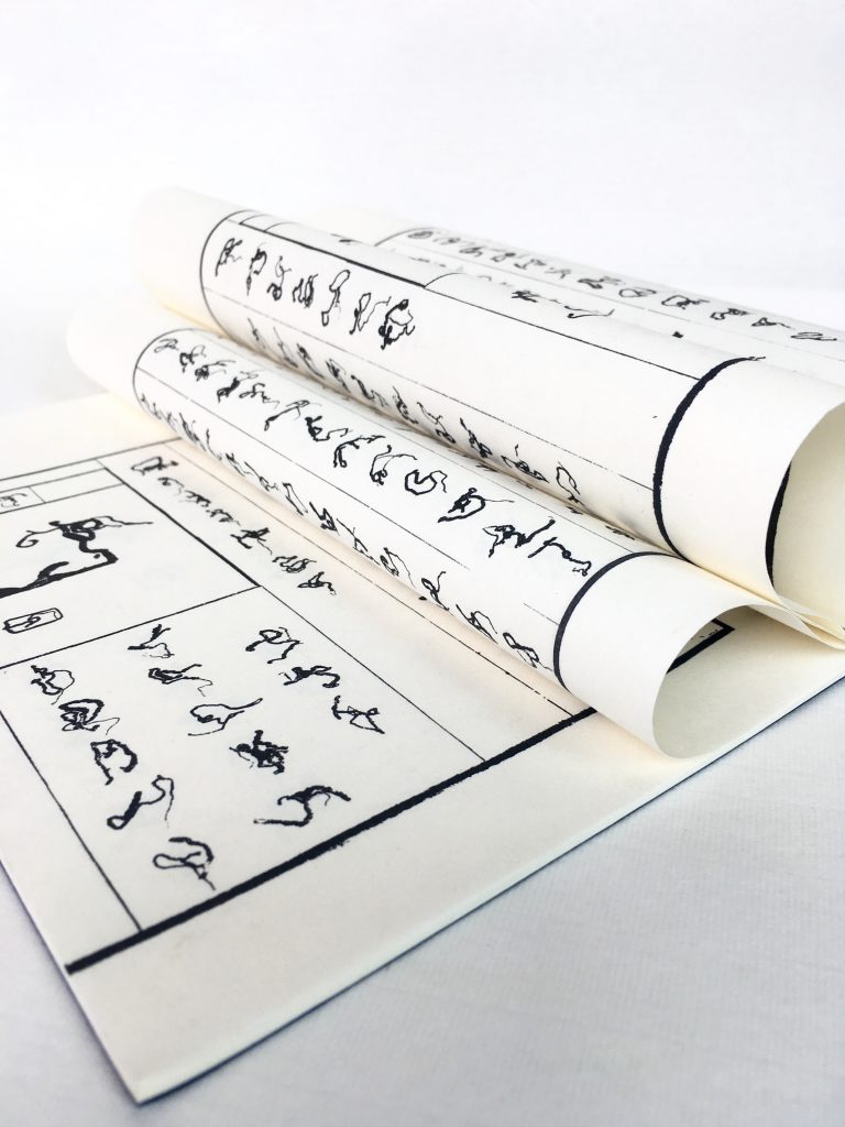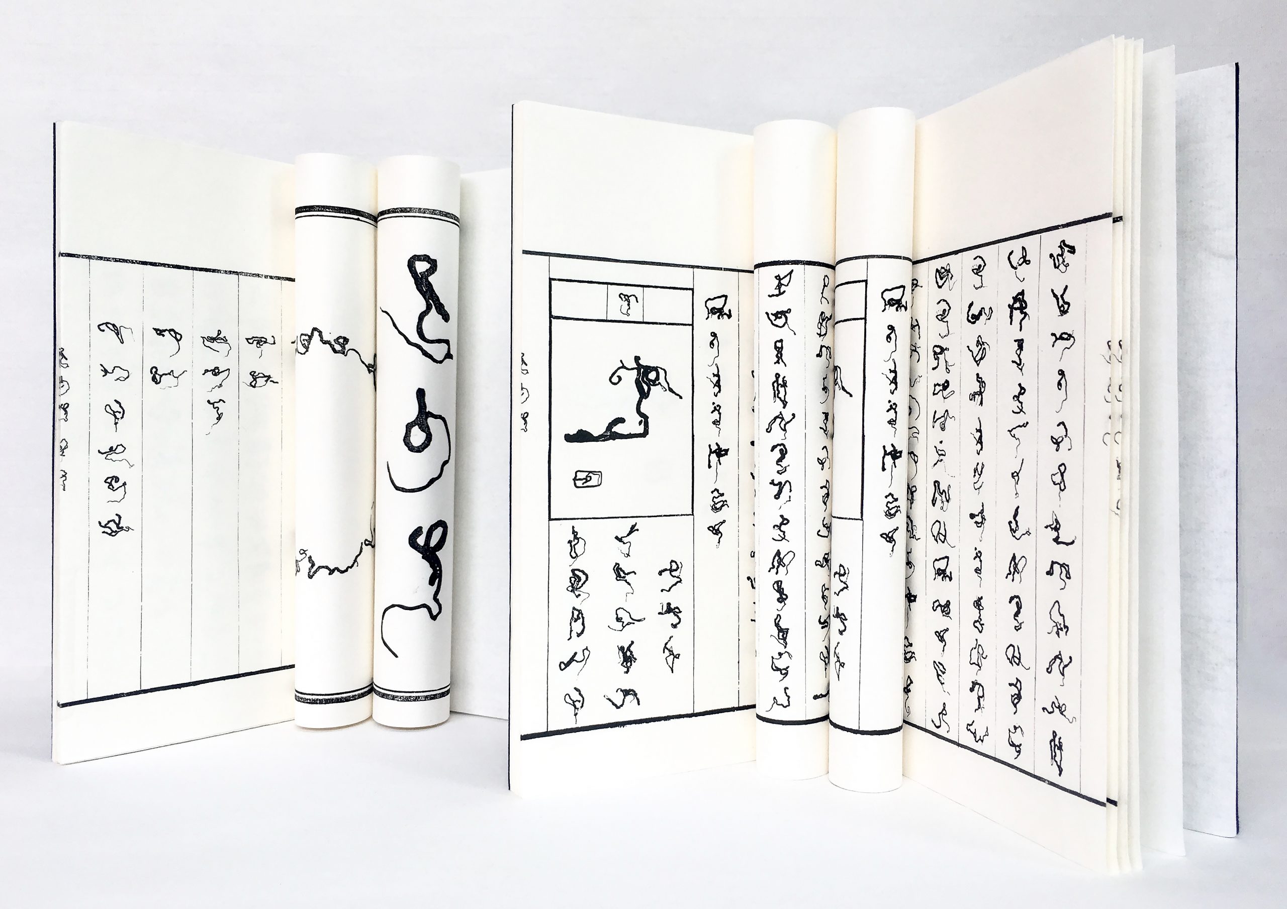 The book is printed on Chinese xuan paper with a blue cover and bound together with double silk cord, according to traditional practices, making reference to China’s extensive history of keeping historical records, printing and bookmaking. In doing so it suggests the book and its contents are indecipherable not because they are fabricated, but because they belong to a world or culture we have yet to fully comprehend, thus elevating the ubiquitous traces of nature and emphasising their innate beauty.